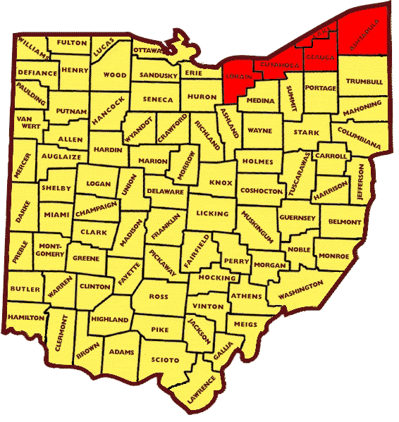 ![]() -- Traditionally includes Ashtabula, Cuyahoga, Geauga, Lake, Lorain Counties -- President: John Scramling, Brush High School