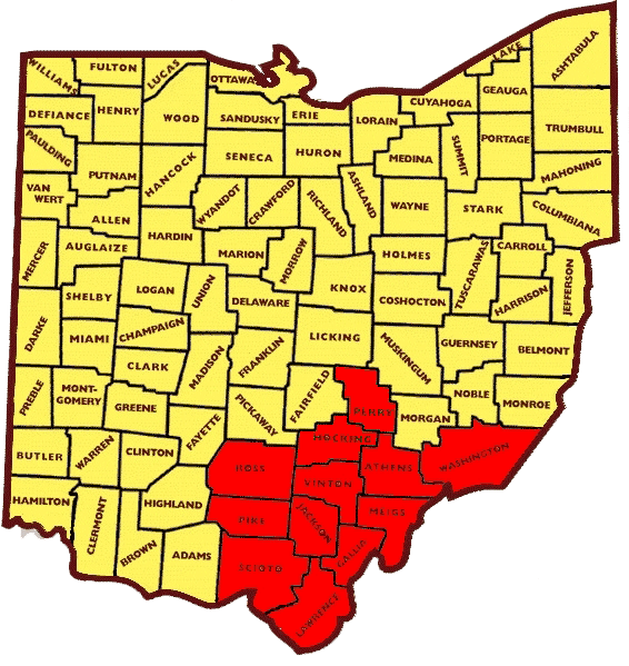 ![]() -- Traditionally includes Athens, Gallia, Hocking, Jackson, Lawrence, Meigs, Perry, Pike, Ross, Scioto, Vinton, Washington Counties -- President: Paul Boll, Wheelersburg
